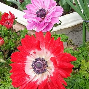 アネモネ アンアリス せっかく綺麗に咲き揃っていたのに暴風と雨で散ってしまいそうです😢 かといって屋根の場所に避難できるものにも限りがあるし、ごめんね。
