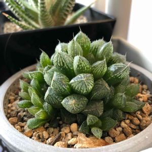 ミラーボール(ハオルチア属) 葉が多面的で尖っているミラーボール♫ 一回り大きくなりました😊 今日の千葉県の天気は曇りのち晴れ🌤 (最高気温15度/最低気温6度) 家族はまだ寝てるので僕は植物タイムを満喫中🌿 皆さん、良い一日をお過ごしください♫
