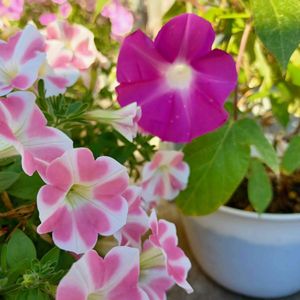 ちょっと満開すぎましたが どうしてもこの情報を… この2つはホームセンターDcmと サントリーフラワーズのコラボ苗 サフィニアサマー。 多分入荷したのを見た方多いのでは? 普通のサフィニアやミリオンベル 販売した後5月後半に Dcmで大量に入荷🌱🌱🌱 普通のサフィニアなどの後なので 欲しい人は既に買った後… 実は私もそうでしてみるだけ… 6月に入っても在庫沢山有って 月末に100円になっていたので 徒長したの連れて帰りました。 普通のサフィニアとか3月から売ってる。 6月末に徒長苗からのスタート。 遅すぎる😑 でも頑張ってお世話して咲きました🎊 思っていたよりとても可愛い😳 ピンクはまとまり良くてサフィニアブーケに近いかな、ブルーよりお花小さい。 ブルーは生育旺盛です。 好みの色! こんなに可愛いのなら 定価ですぐ買えばよかった。 来年この花が定価で皆さんが買いたいって 思ってもらえるようにの情報でした。