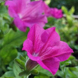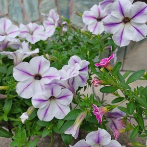 おはようございます •*¨*•.¸¸♪ サフィニア🌸 またまた咲き始めました(*˘︶˘*).。.:* 3年目♪頑張ってます😆👍️❤️