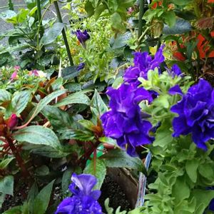 おはようございます❗️ 八重咲きのペチュニア 玄関で不審者に睨みをきかせてる感じでしょうか。 堂々としてます。 自分も見習いたい😅