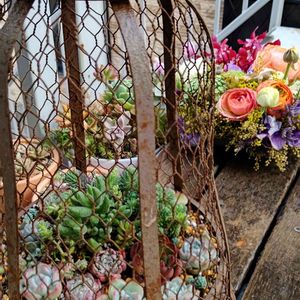ずっと続く雨☔️ 早く梅雨明けして欲しい🙏 DAISOの鳥かごに寄せてみました😊 こんな時期に根付いてくれると良いな〜