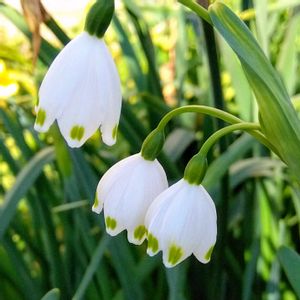 今日のお花 スノーフレーク🤍💚 スズランのようなお花が可愛い💕 別名 スズランスイセン ②桜の下でも咲いてます ③④⑤ソメイヨシノも満開です🌸 預かった孫3人と何度も散歩&かけっこで筋肉痛です😳