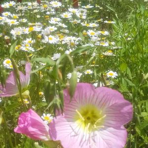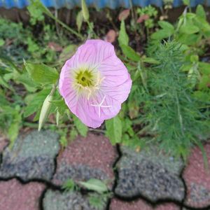去年のこぼれ種から咲いてきてます。普通の昼咲きツキミソウの花より少し大きめです。 長く期間咲いてくれます。