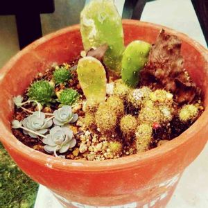 サボテンの寄せ植え🌵の鉢を真横から🎶
