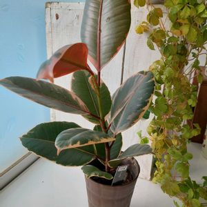 フィカスルビーです。2つ目の鉢カバー完成!室内ですがルビー色が続くといいなー!