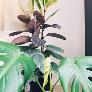 フィカスルビー✨ 枝分かれして大きくなりました。ふちの斑が焼けてしまったので、最近は家の中に入れ日当たりの良い出窓においています