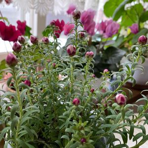 花かんざし ちゃんです。 昨年 夏越し失敗😣 懲りずに また、お迎えしました。 小さなカサカサの、かわいい💞お花です。 蕾も、キュート🥰