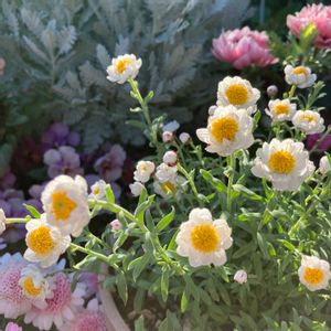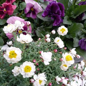 白いお花が綺麗でした♡ 鉢植えを増やしたくないので、HCで目の保養をしてきました🥰 サイネリアは中心がブルーなのに、そうは撮れてませんでした(^-^;
