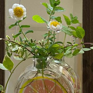 はなかんざし 狭い窓辺に生けてみました。切り戻しを初めてしました。 まだ小さな花芽があるので後から咲くのを楽しみに💕