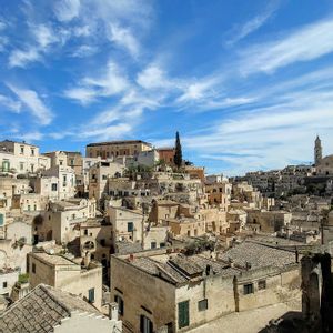 4月20日(日) イタリア🇮🇹旅行 イタリアの長靴の土踏まずの位置にある マテーラはサッシ(洞窟住居)の街。 街の後方の山の旧市街には 今にも崩れそうなサッシがびっしり。 2枚目右上は洞窟教会 4枚目 ヴィコ・ソリタリオのグロッタの家(洞窟住居) 11世紀から1952年,農地解放前の 小作農民の石灰岩の洞窟住居。 扉も電気も水道もなく家禽と 同居スペースがあるのが特徴。 現代文明から取り残された貧しい人々の住居。 強制退去当時の家具や道具が置かれている。