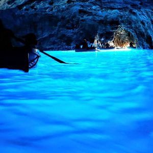 4月21日(月) イタリア🇮🇹旅行 カプリ島 青の洞窟 ナポリ港から船でカプリ島に出発 カプリ島は古代ローマから 世界中の憧れの保養地。 カプリ島のマリーナ・グランデ港から モーターボートに乗り換え青の洞窟へ 青の洞窟入口で順番に 5人乗りのボートに乗り換える。 ボートではほぼ寝そべっている状態。 船頭さんが波の高さやタイミングをはかり チェーンを手繰り寄せ洞窟にもぐり込む。 入ると一瞬で朝の光に透き通る青一色の世界 ホンの5分後(それ以下か?) また同様に洞窟の外に〜 そして再びカプリ島に戻る。