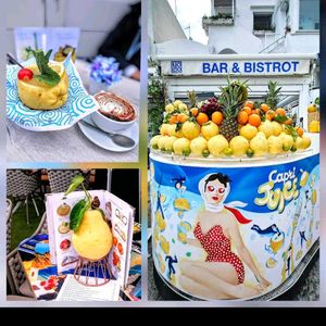 4月21日(月) イタリア🇮🇹旅行 カプリ島 ここはレモン🍋の島 しかも大きい〜👀‼️ みやげものやさんが立ち並び 南イタリアの光に透き通る海の色 道行く人々がみんな浮かれてみえる。 もちろんワタシもね〜 レモン🍋シャーベット いただきました〜🩷🩷(笑)