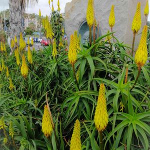 アロエベラの黄色い花が満開です💛 後ろには花に囲まれ微笑む紳士😆