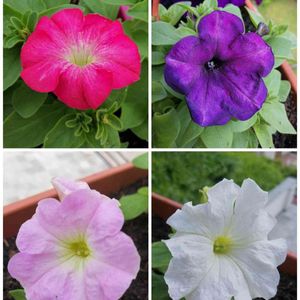 種から育ったペチュニアの記録📝 左上から時計回りに 第3️⃣号 ピンク 大ぶりの花で健康体そのもの🎆 第4️⃣号 紫 後ろにいる第1️⃣号(4/29)の紫よりは色が薄く若干赤みが強い💜 第5️⃣号&第7️⃣号 白 昨年の白いペチュニア(2020/7/30)のお子様👩👧👧 第6️⃣号 薄いピンク キンギョソウの鉢にチョロっと生えていたのを救出したので弱々しい子🥺これから元気を取り戻してくれればいいのですが... まだこれから開花組もおりますよ😉