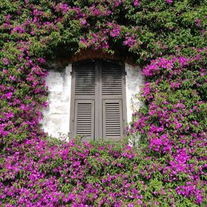 ブーゲンビリアの窓フレーム🖼️ 全部ピンク💗に色付くまで、もう少し‼️😆