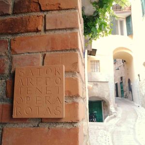 蔦の這うお宅の玄関前に掲げられた SATORスクエア🔃🔄 上から読んでも、 下から読んでも、 右から読んでも、 左から読んでも... SATOR AREPO TENET OPERA ROTAS ラテン語の回文です😵 ミステリアスな文字の配列についてご興味のある方はウィキペディアへGo‼️🏃🏻♂️💨