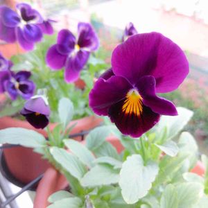 種から育ったパンジー第2️⃣号 また紫💜... でもこちらはチョビ髭が金髪です😆 ❁.。.:*:.。.✽.。.:*:.。.❁.。.:*:.。.✽.。.:*:.。.❁ 今日、ワクチン💉2回目やってきました。 今のところ元気です😌