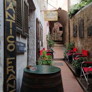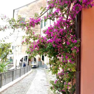 ブーゲンビリアが咲く村の道💗 坂道が多く、狭いので車は入れません。 昔はロバなどが物資を運んでいたようですが、今は三輪自動車が活躍しています😊