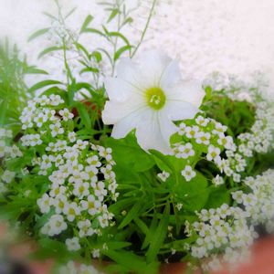咲き始めたペチュニアと、終盤アリッサム⚪💚⚪💚⚪
