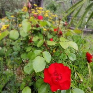 義実家に寄ったので、バラ🌹の咲き具合をチェック🧐 まだ、この赤いのだけしか咲いていませんでした😶
