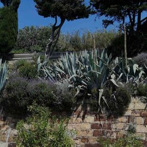 アガベ💚とラベンダー💜 アガベは巨大アスパラガスのような花芽付き😆
