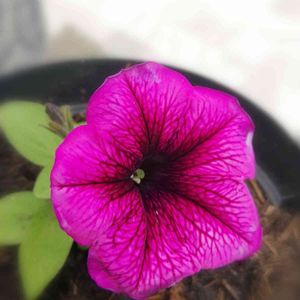 種から育ったペチュニア 第2️⃣号は濃いめのピンクでした。 実はこれは私が種をまいたものではなく、ゼラニウムの後ろにこっそり生えていたのを救出したもの。葉が少なく弱々しいのに花が咲いてしまったので、このあとちゃんと育ってくれるかどうか...とりあえずピンチだな🤔