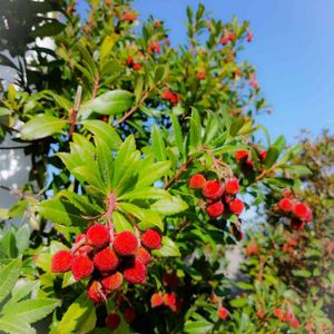 イチゴ🍓ではなく...... イチゴノキ🌳です😆 美味しそうに見えますが、果実は食べられても味はしないそうです😶