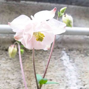 セイヨウオダマキ💗 家の前の私道に咲いているのを見つけました✨ イラクサやノボロギクなどの雑草軍の中に一際輝く✨お嬢様が👸✨うすーいピンク色が素敵💗✨ ちなみに後ろには、ご近所さんちの水道管🚰が写ってます😩