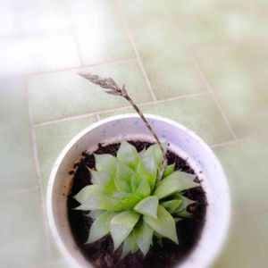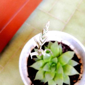 ハオルチアの花💚咲きました✨ この後、親株のためを思い、花芽はカット✂️ 子株が3個ついているので、近日中に株分けしようと思ってます😊