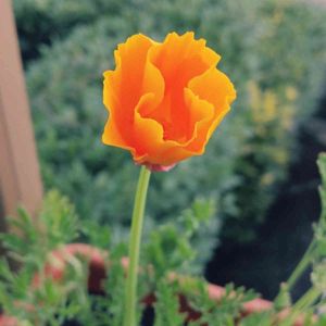 ハナビシソウ / カリフォルニアポピー 1/15の右側のポットの謎の植物の花が開きました。山吹色のハナビシソウと判明😃 日中しか花が開かず、今日は全開せずに途中までで閉じてしまったので、また明日のお楽しみです🥰