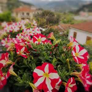 紅白ストライプのペチュニア おそろいの苗を買ったつもりが...... 手前は赤🔴が多めで白⚪が少なめ 奥は白⚪が多めで赤🔴が少なめ どちらも可愛いから、まぁいっか😆