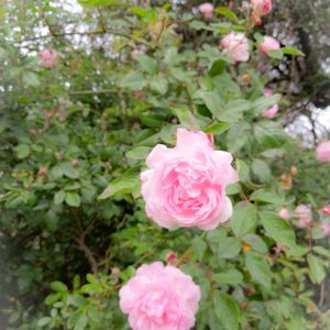 近所の廃屋の荒れ果てた庭に咲くバラ🌹 手入れもなにもされていないため伸び放題で、2m以上の高さになっています👀 綺麗なピンク色のお花💗蕾もいっぱい💖 美人でも強い彼女💪✨