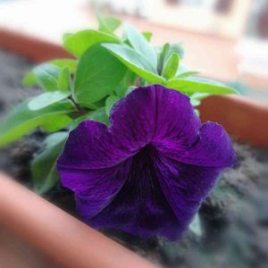 種から育ったペチュニア 第1️⃣号の花は紫色💜でした✨ 花色がわかったので、このあと初ピンチ✂️