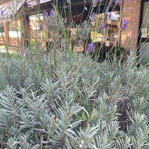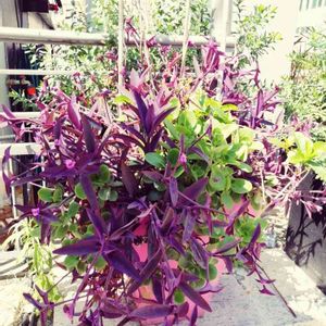 街のバールの脇に飾られた紫御殿。 葉っぱが伸びて、なかなかワイルドに育っていますね😄