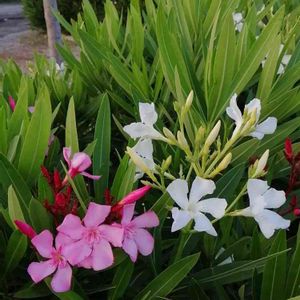 夕方のお散歩コースで咲いていたキョウチクトウ🌸 ピンクと白もきれいですね💗