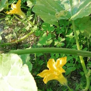 ズッキーニ・トロンベッタの雄花が2つ咲きました。すぐに摘み取ります✂️ 夕飯のおかずになる予定です🥰