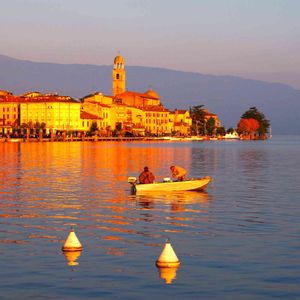 先ほど投稿したオリーブのpicは このガルダ湖畔で撮りました。 散歩しているうちに陽が傾き、 静かなサロの街は 金色に染まっていきました。