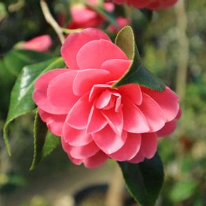 江戸時代から名花と言われているツバキ・王昭君🌺 千重咲きの細めな花弁が美しい☘️☘️