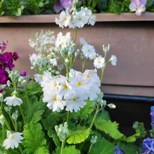 昨日、夕方撮りました 雨が降れば、乱れてくるので、最後の写真をと思い、鉢植えと、ミニ花壇の、プリムラマラコイデスを写しました☘️🩷🤍🩷