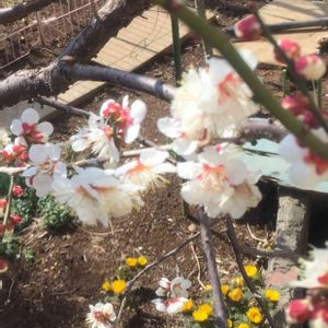 🌟こんばんは🐣 朝日の中🎶❤️ 春待ち隊が芽吹き始め👍🎶😊 穴掘りベイリーからゲージで 守られている植物達😅