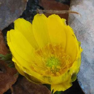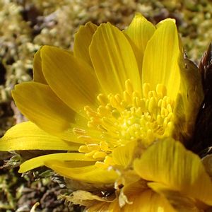 こんにちは。 うちの福寿草も開花しました。 少し日陰なんで、 全開になってないですね。