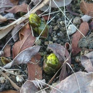 おはようございます。 お庭の福寿草が、顔を出してきました。 お天気良ければ、 そろそろ咲きそうですが、 しばらく、お天気ぐずつきそうだし、おあずけかな。
