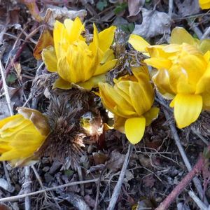 先週投稿の「フクジュソウ(福寿草)」すべての蕾が開きました。パチリ