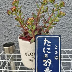 2018.11 キャンドゥで購入 シノクラッスラインディカ 初めの印象と違って枝わかれしてかっこよくなったなと思っていたら いきなり真っ赤な花が咲きました。 寄植えしたプランターはお気に入り♪ 長野県のwood63さんの作品です。