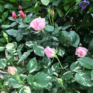 昨日、ちょっとだけ☀️みたけど また今朝は☔️ 薔薇がかわいそう。 この子は雨にちょっと似合うかも💜