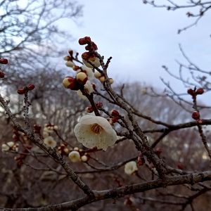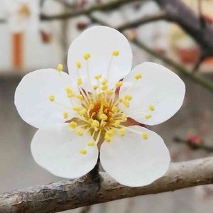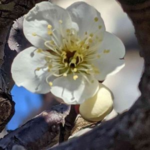 ❇ウメ、今年は遅いじゃないか🦍 ❇だって寒かったんだもの🥶 やっと開花した我が家の白加賀一輪♡ 昨年より2週間も遅い😱