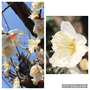 3/6㈯⑧ 羽根木公園の梅の花② 《 白加賀 しらかが 》 こちらも2/22のコラージュに入れた白梅です。 羽根木公園で1番多い品種です。 野梅性(やばいしょう)の白梅です。 梅酒、梅ジャム、梅羊羹、梅大福などに加工される実梅です。