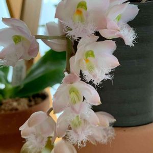 クロウェシア、レベッカ・ノーザン’ミッカビ’ 蕾の形が蘭っぽくなってきました。 6個しかない蕾があまり重ならないように、 ライトが当たる向きを少しずらしたら、 左右に角度調整できました。 おもしろーい💕