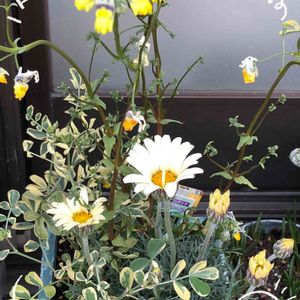 ✨久しぶりの寄植えです✨ 後ろのツノが出た様な黄色い子は、ネメシアです。 枝を伸ばし、ほふくする様に広がるそうです。 個性のある花形と風にそよぐ姿が可愛い です😍 動きのあるお花達でまとめてみました💕